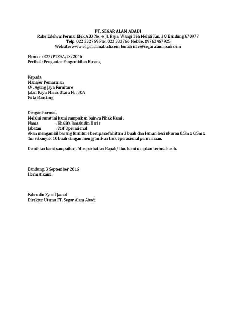 Cara membuat contoh surat pengajuan barang inventaris kantor. Surat ini dibuat oleh kita sebagai pengambil barang kepada seseorang atau perusahaan dimana barang yang akan kita ambil berada. Surat pengantar ambil barang surat pengantar ambil barang. Elbow sch 40 2 berjumlah 8 buah 2. Surat kuasa pengambilan barang di pegadaian. Meski beberapa perusahaan sudah mempersiapkan templates untuk surat pengajuan barang inventaris kantor, akan tetapi anda juga perlu memahami cara pembuatannya. Purle rain jalan persatuan, no.117, kota jakarta telepon (084) xxxxxxx, faksimile 56584624. Simpan simpan surat izin pengambilan barang untuk nanti. Mencantumkan kepala surat di bagian atas dengan format rata tengah.