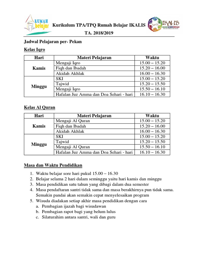 Download Contoh Jadwal Pelajaran Tpq Pdf Secara Gratis Di Sampdf.