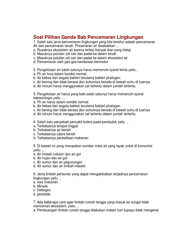 80+ Soal Pencemaran Lingkungan Pilihan Ganda Dan Jawaban.