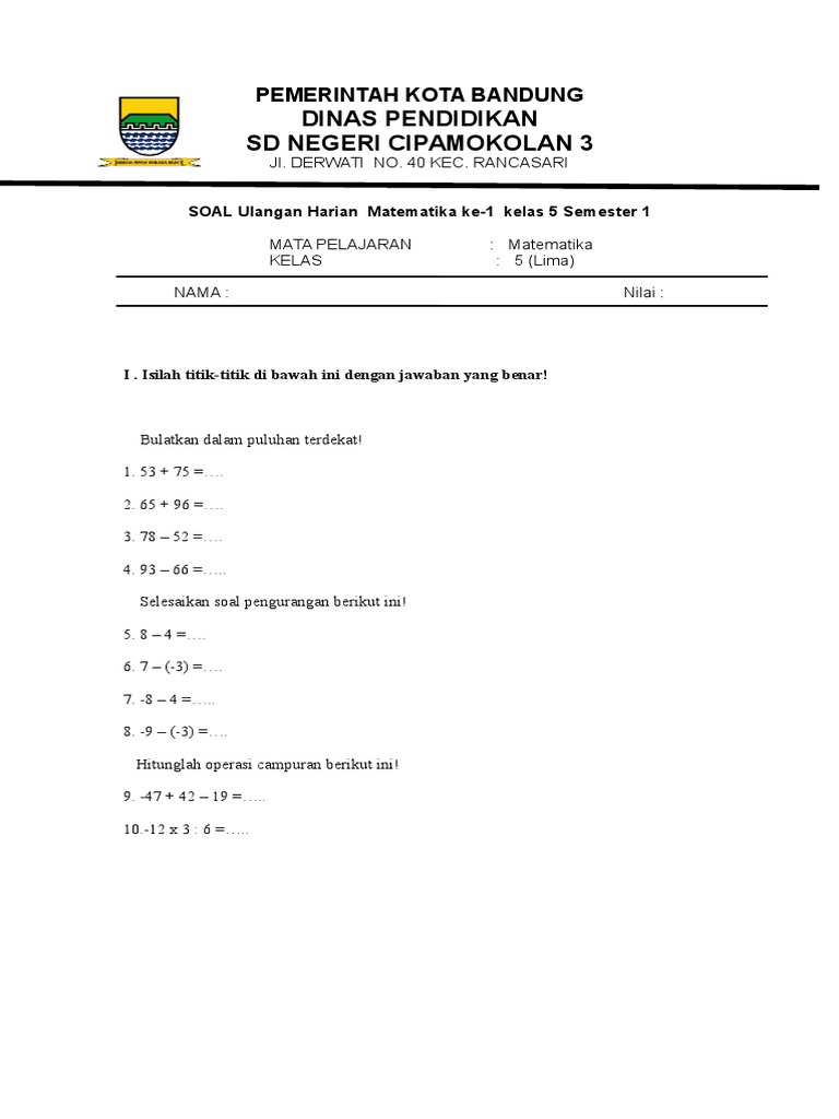 Download soal tematik dan kunci. Soal cerita bahasa inggris kelas 4; Soal uas bahasa indonesia kelas 5 sd semester 1 (ganjil) dan kunci jawaban keterangan soal : Soal ulangan harian pai dan budi pekerti sekolah dasar kelas 123456 semester 1 dan 2 kurikulum 2013 pelajaran 7 indahnya saling membantu. Soal ulangan harian pai kelas 5 semester 1 kurikulum 2013 adalah salah satu bagian dari postingan kami kali ini. Adapun soal yang saya bagikan ada di postingan bagian bawah. Soal ulangan harian ke 3 mapel tik / mulok komputer kelas 5 sd semester 1. Setiap tema terdiri dari beberapa kompetensi dasar muatan mata pelajaran. Soal uas ipa kelas 5 sd semester 1 (ganjil) ktsp.