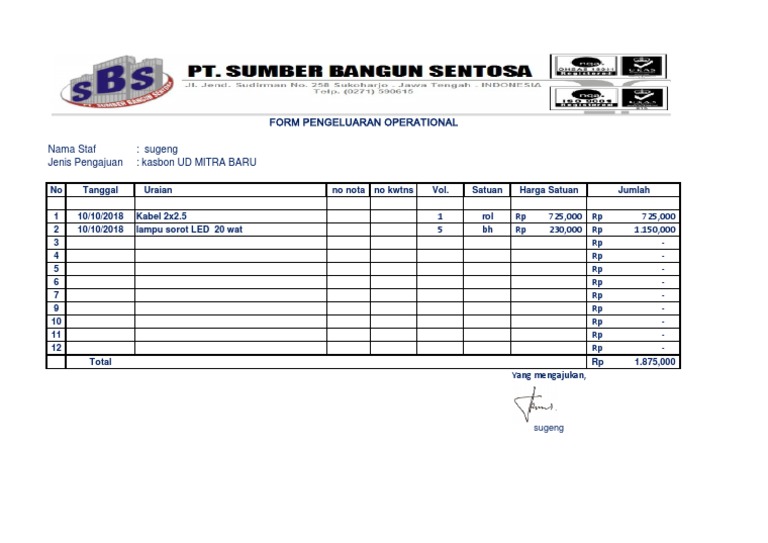 Mencatat nama karyawan yang mengajukan kasbon. Format pengajuan dana kas kecil. 7 contoh surat keterangan kerja perusahaan paling baru pdf file. 11 sep, 2021 posting komentar pembukuan adalah salah satu hal terpenting yang harus dilakukan dalam menjalankan bisnis, termasuk usaha fashion. Contoh surat meminjam uang ke perusahaan. Download contoh buku kas untuk pengelolaan dana bantuan operasional bos format microsoft word microsoft excel excel microsoft word. Selain itu kartu utang ini akan dibuatkan satu per satu vendor dari perusahaan dan akan dimasukan kedalam map atau file tersendiri. Misalkan 2 ply atau 3 ply. Cara input kasbon disini ada 2 cara.