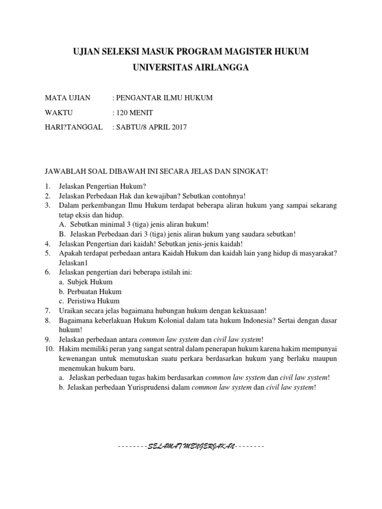 Berikut Informasi Sepenuhnya Tentang Contoh Soal Uts Pengantar Ilmu Hukum Semester 1.