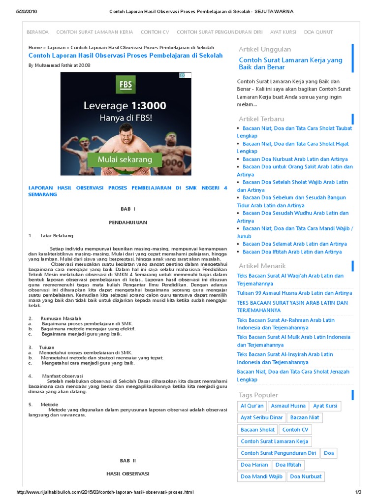 Contoh Laporan Hasil Observasi Proses Pembelajaran Di Sekolah.