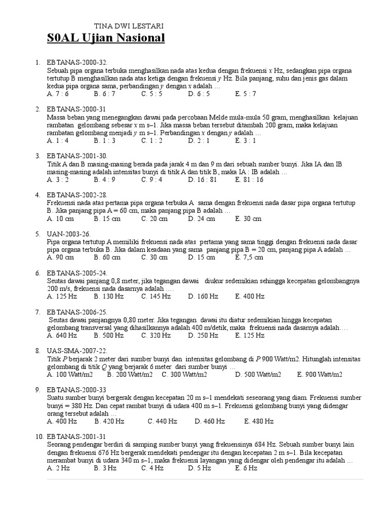 Contoh Soal Un Fisika Tentang Gelombang Bunyi Beserta from pendidikansoal.blogspot.com